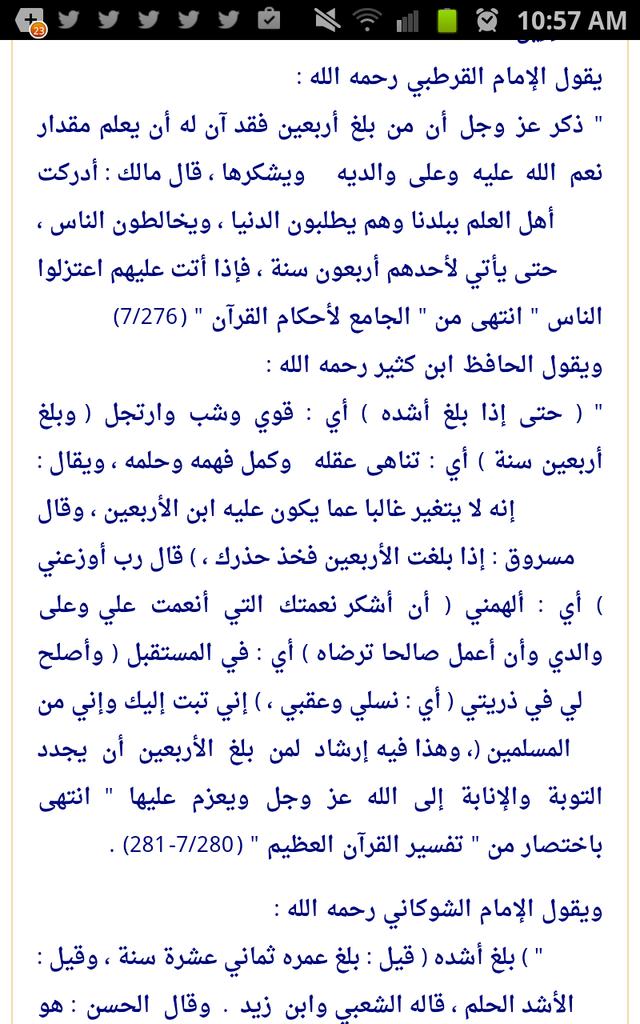 حتى اذا بلغ اشده وبلغ اربعين سنة قال