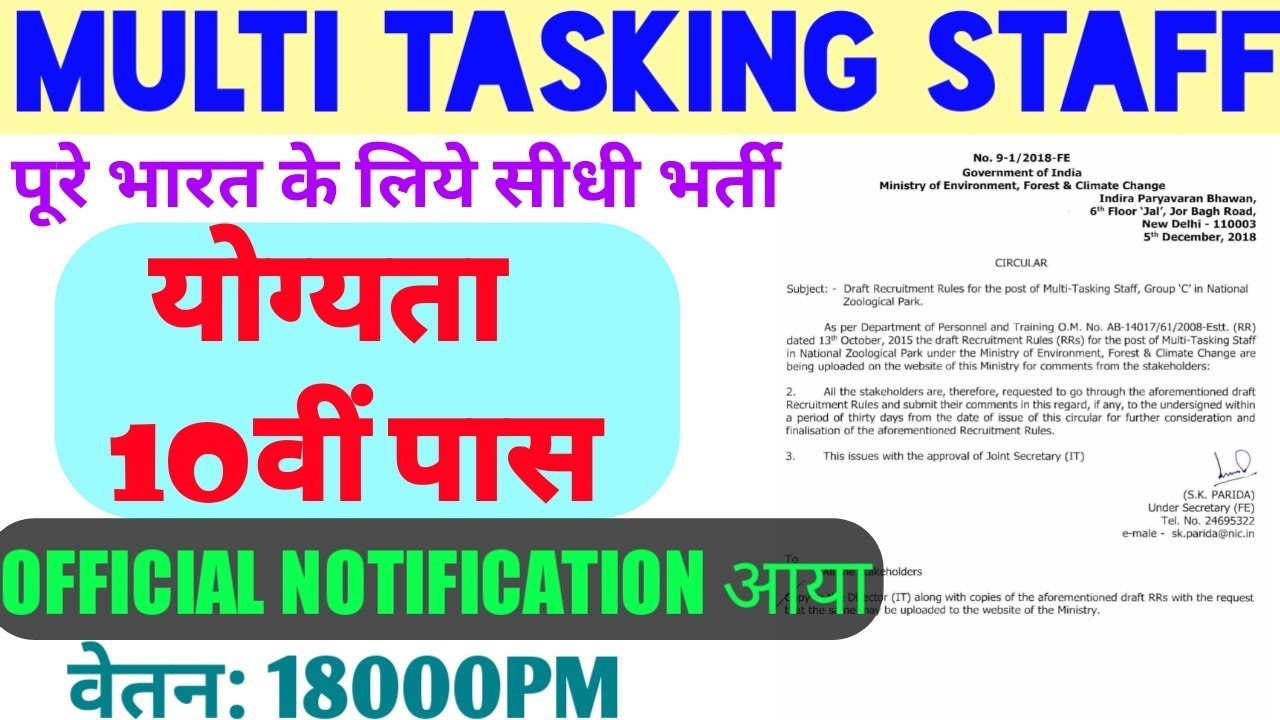 Multi Tasking Staff Recruitment Ministry Of Environment Forest 10th Pass Can Apply Youtube