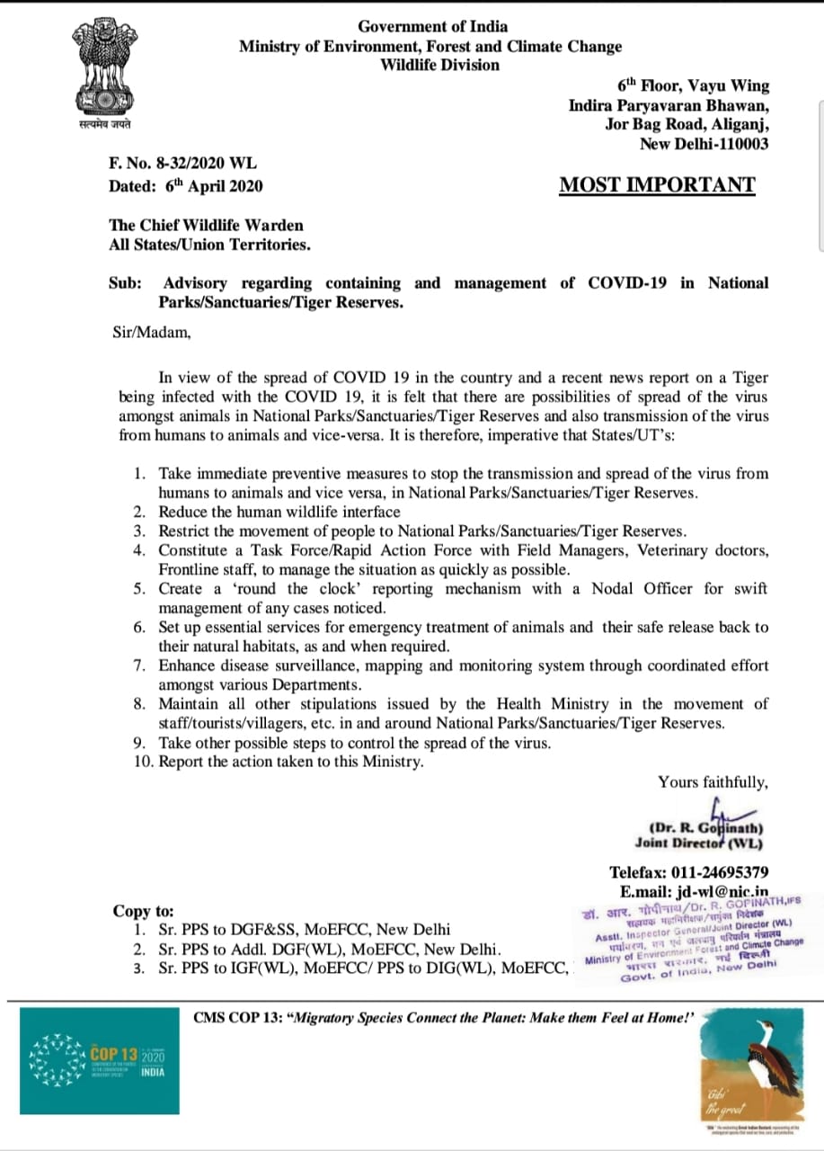 Moef Cc On Twitter In View Of The Spread Of Covid19 In The Country Moef Cc Has Issued An Advisory To All The States Union Territories Forest Departments Regarding Containing Management Of Covid 19 In